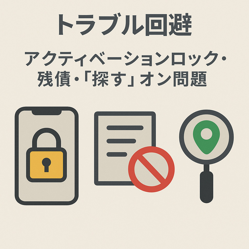 トラブル回避:アクティベーションロック・残債・「探す」オン問題