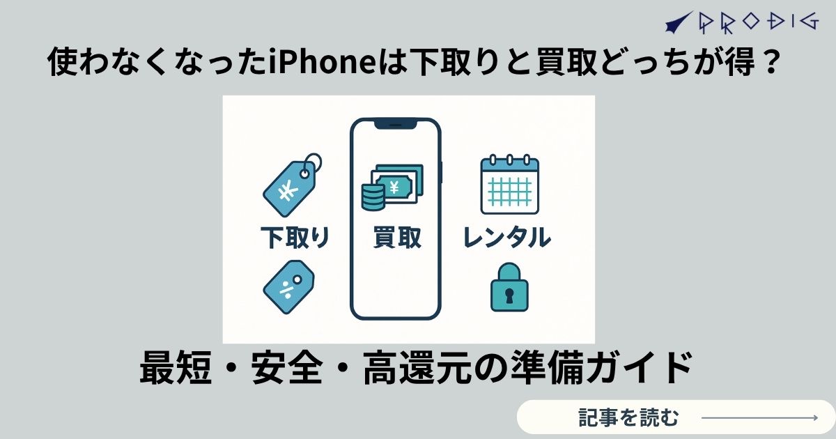「もう使わなくなったiPhoneを、最短・安全・高還元で手放したい」。本記事はそんなニーズに向けて、下取り・買取・レンタルの違いをまずシンプルに整理し、そのうえで“迷わない順番”の準備手順(バックアップ→個別引き継ぎ→Find Myオフ・iCloudサインアウト→初期化→eSIM/ウォレット→外装チェック)を、チェックリストと注意点つきで解説します。