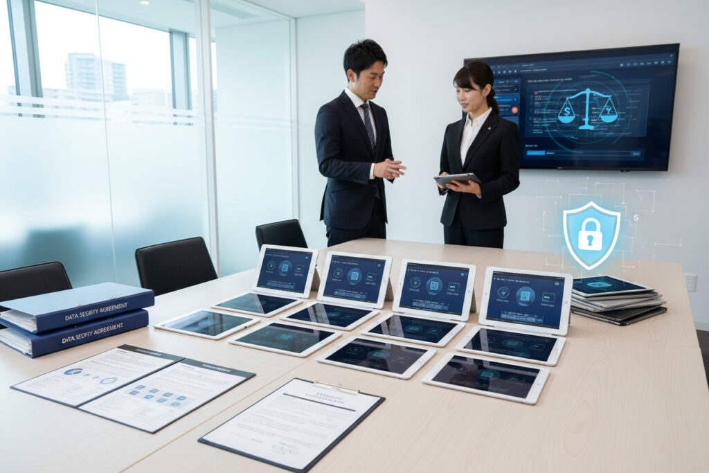NDAはデバイス内情報や顧客名などを含む場合に有効。古物営業法の観点からも、取引相手の確認書類や記録が必要になるため、事前に要件を共有します。契約書の責任分界(紛失・破損・情報漏洩の帰責)もここで明文化しましょう。