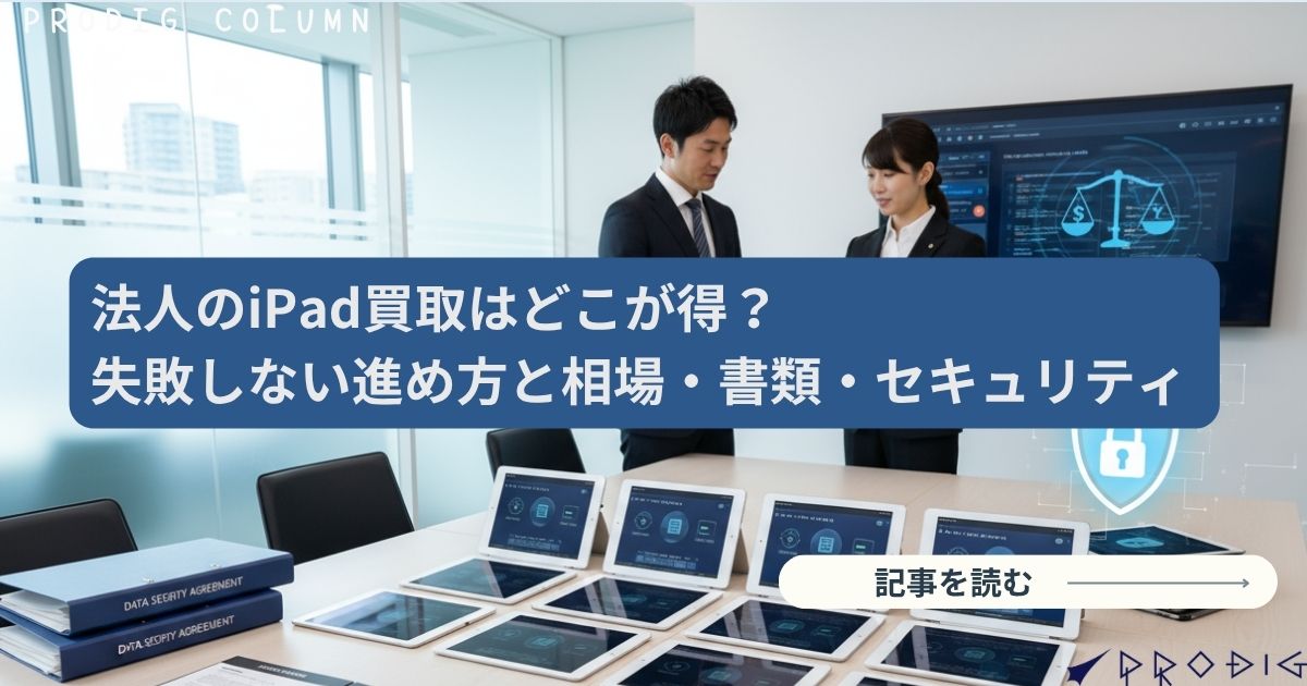 社内で使わなくなったiPadを安全に、かつ高く売るには「準備の質」と「事業者選び」がすべてです。特に法人では、MDMやアクティベーションロック、初期化、データ消去証明、書類整備、社内稟議など、個人売却とは比べものにならない要素が絡みます。本記事は最短でミスなく高価売却するチェックリストと、下取りと専業買取の比較、減額回避の実務ポイント、必要書類と会計の勘所を体系化。